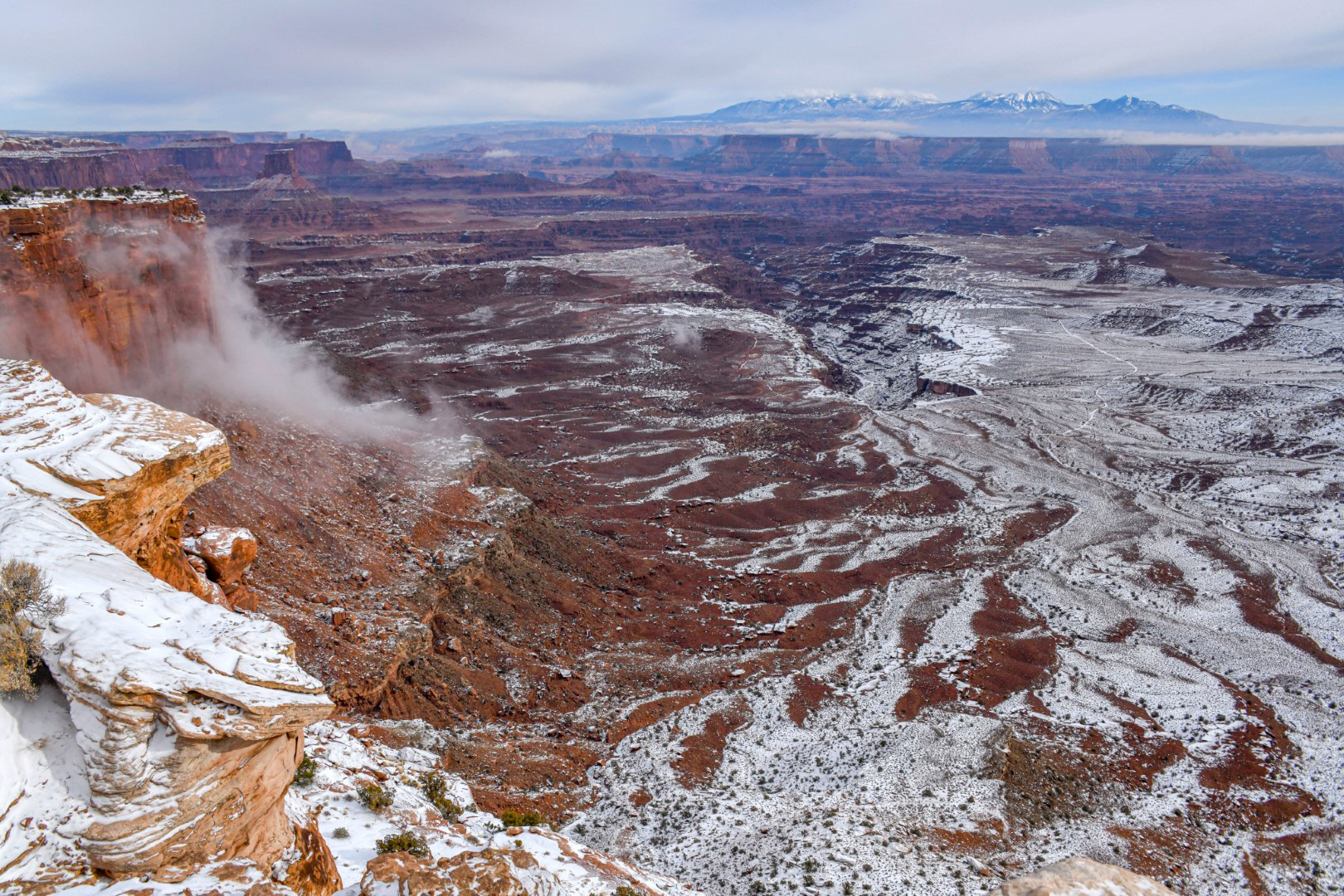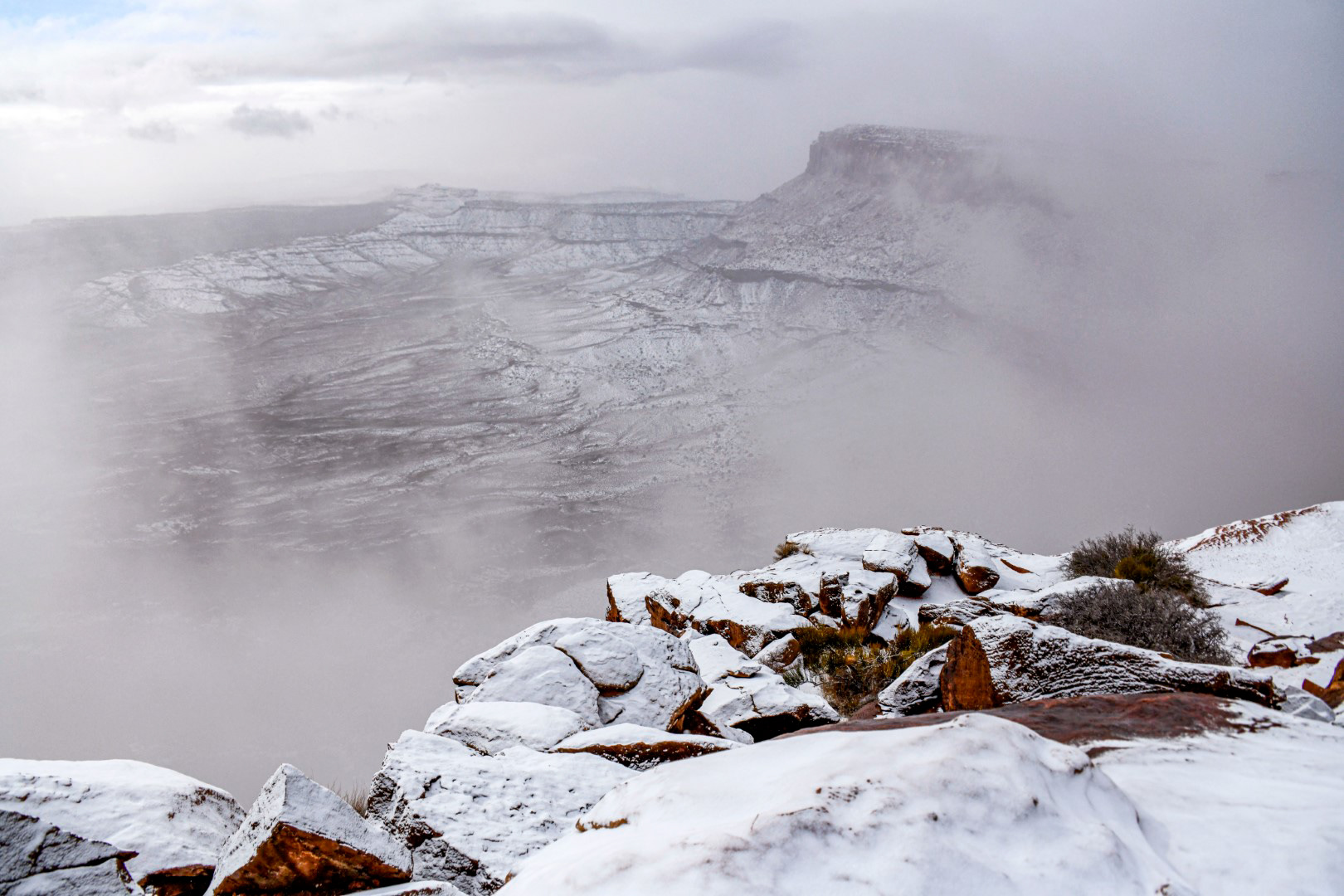Looking through Mesa Arch on a smoky summer day from wildfires